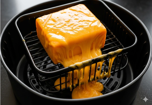 Phô mai nguyên miếng cũng là thực phẩm không nên cho vào nồi chiên. Phô mai tan chảy quá nhanh, loang ra trước khi kịp vàng giòn.