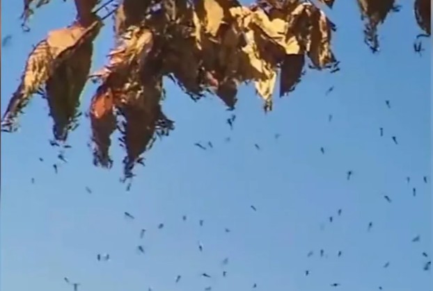 Muỗi vằn đực sẽ tập trung trên mặt nước hoặc ven bờ, bay lượn lên xuống tạo thành từng cột hoặc đám, nhìn từ xa giống như những làn khói đen hoặc xám. (Ảnh: Sohu)