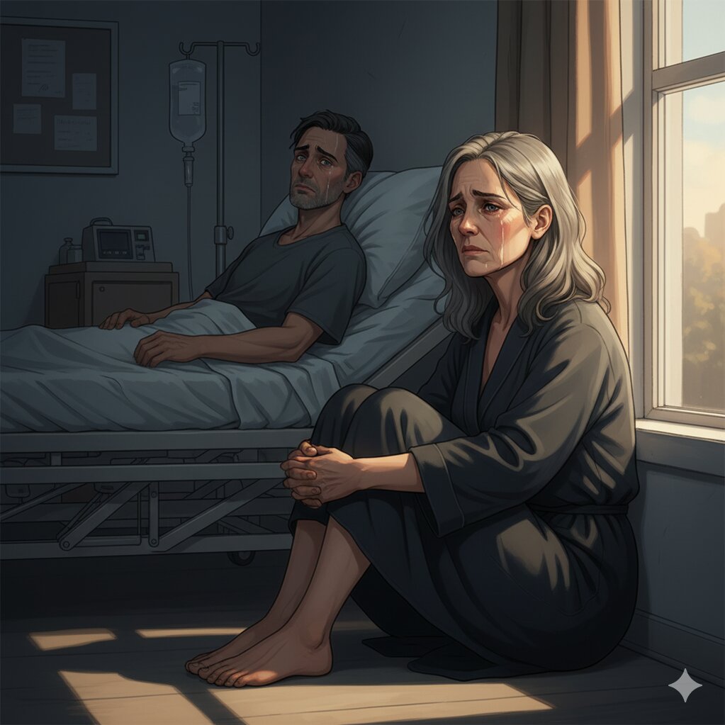 Vừa chăm chồng tôi vừa gạt nước mắt, mới một tuần tóc tôi bạc trắng. Chồng nằm đó không dám nhìn vợ con, vợ chồng con gái cũng rất giỏi. Bố là thần tượng.. Bây giờ cả hai đứa đến ôm lấy tôi.