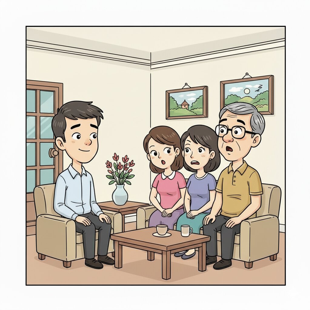 Lần đầu về thăm nhà bạn gái, chàng trai hồi hộp ngồi trước mặt bố cô.