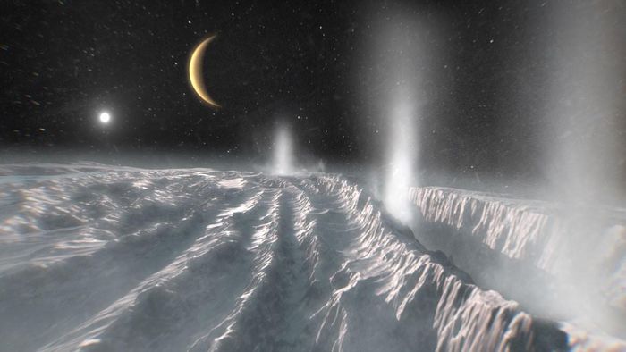 Thêm nữa, tàu Cassini của NASA từng phát hiện các chùm vật chất dạng sương mù, chứa nhiều hợp chất hữu cơ, phun ra từ các khe nứt ở vỏ băng, được cho là xuất phát từ đại dương ngầm. Do các hợp chất hữu cơ hòa tan trong đại dương nước ngầm có thể tạo thành các phân tử tiền sinh học, tiền thân của sự sống nên các chuyên gia tin rằng có khả năng tồn tại sự sống ở mặt trăng Enceladus.
