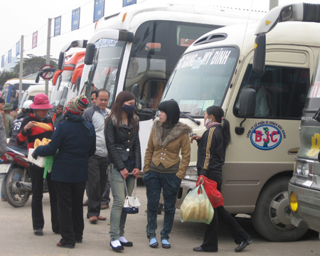Từng là nạn nhân của nạn "nhồi khách", Phạm Ngọc Lan, sinh viên ĐH Kinh tế Kỹ thuật Công nghiệp Hà Nội, vừa được nghỉ học cũng vội vã ra bến xe về quê. "Năm ngoái về 27 Tết, xe đông nghẹt, em phải đứng từ từ lúc lên xe đến lúc xuống xe. Năm nay, em thấy các xe vẫn rộng rãi, không biết ra khỏi bến xe có bắt thêm khách không?", Lan nói.
