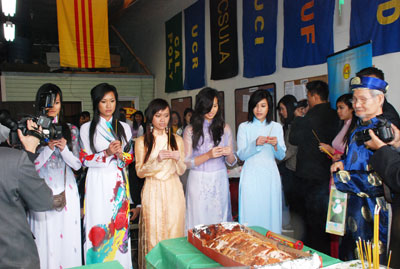 Các sinh viên Nam California đang làm lễ Rước Tổ Tiên về ăn Tết trong ngày Tất Niên theo phong tục VN.
