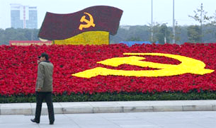 Cờ đảng được trang trí trong các công viên .AFP