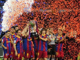 Niềm sung sướng của cầu thủ Barca trong lễ đăng quang