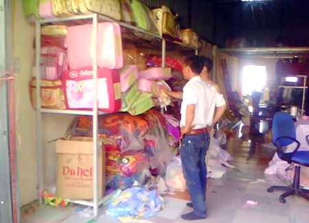Ngoài ra, tại các cơ sở này thường mua một vài bộ “chuẩn” của các hãng lớn để trưng bày, nhưng khi có khách mua thì lấy từ kho ra những bộ chăn nhái. Hoặc những hộ dân không có tiền đầu tư máy móc thì nhập về những bộ chăn không có thương hiệu, sau đó gắn nhãn mác để bán chênh lệch giá…