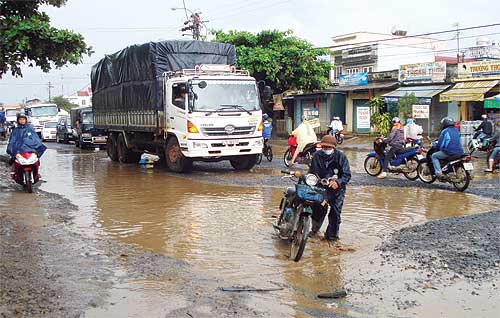 Những ai đi trên QL14, đặc biệt từ Đắk Lắk về TP.HCM, đều thấy rõ nhiều đoạn đường bị tan nát, hỏng nặng, ổ gà nhiều vô kể. Đoạn qua cầu Duy Hòa, phía nam TP Buôn Ma Thuột được giới tài xế cho là kinh khủng nhất bởi hàng loạt ổ trâu, ổ voi sâu hoắm ngay giữa lòng đường, xe cộ đi qua bị dằn xóc dữ dội.