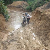 Đường núi vào vùng chuyên canh cao su Phong Sơn cũng thường xuyên ngập lụt do hồ thủy điện tích nước