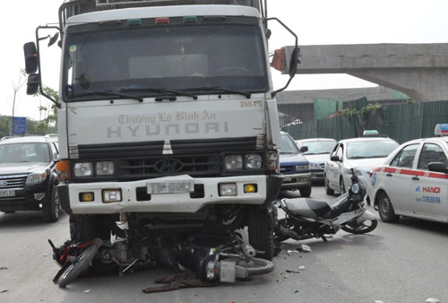 Xe tải "nuốt gọn" 3 xe máy, 1 thai phụ nhập viện