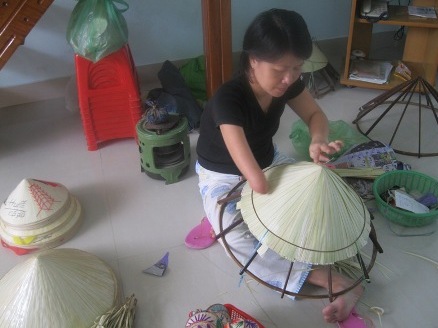 "Nón Thúy" đẹp không thua kém nón của những bạn nghề lành lặn khác. Các vành nức được xây lá thanh mảnh mà chắc chắn, không bị xộc xệch. Không chỉ đơn thuần có sản phẩm nón lá, chị Thúy c̣n sáng tạo làm thêm nón bài thơ, nón thêu cũng từ bàn tay tật nguyền. Thu nhập của chị từ nón v́ thế khá ổn định. Vui hơn là chị tự lập cho bản thân, thể hiện được tài năng của ḿnh.