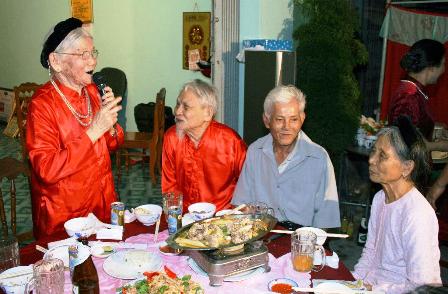 Mọi người nâng ly, luôn miệng chúc mừng vui vẻ, ai cũng có chuyện để góp vui, tạo nên không khí ồn ã. Còn phía cuối gian bếp, tiếng những người giúp việc bếp núc hối thúc nhau, tiếng heo kêu, gà quác… náo cả một góc vườn.