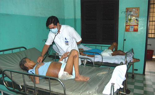 Bác sĩ ở trung tâm khám cho các bệnh nhân