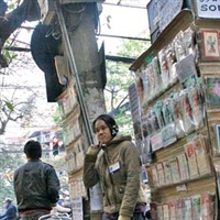 Đầu phố Lư Quốc Sư là hai bạn Đạt và Mai, cũng bán những sản phẩm búp bê, bookmark bằng vải cùng bưu thiếp và lịch. Ngoài việc chú ư đến khách qua đường và mời chào họ, cả hai tranh thủ chuyện tṛ, chia cho nhau một mẩu báo bé xíu có thông tin thú vị. Trời lạnh, hai bạn vừa bán hàng vừa xoa hai tay. Không người khách nào dừng lại hay ngó lên gian hàng của họ. Không nản ḷng, Đạt và Mai vẫn mời khách bằng những động tác duyên dáng: hạ thấp vai xuống một chút, bàn tay hướng lên nơi đặt những con búp bê.