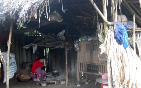 Chị Việt đang nấu ăn trong gian bếp đã ọp ẹp