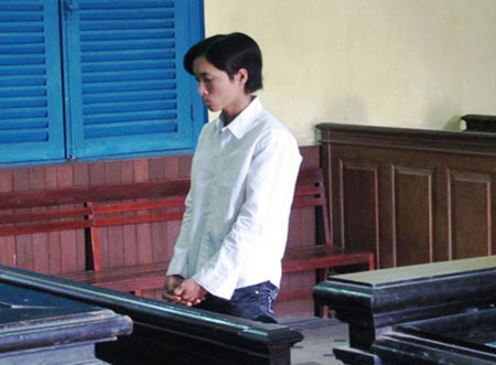 Đôi mắt thâm quầng trên gương mặt nhọn, g̣ má nhô cao trên làn da xanh xám khiến Toán già dặn hơn nhiều so với tuổi 16 của ḿnh. Suốt thời gian diễn ra phiên ṭa, bị cáo vẫn cúi gằm đầu, người cứ đơ ra như mất hồn, hơi thở nặng nhọc thỉnh thoảng lại nhăn nhó v́ ho.