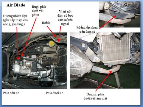 Honda sẽ có thay đổi về thiết kế xe như không để dây dẫn nhiên liệu quá gần nguồn nhiệt, bộ phận làm mát không gần cổ ống xả… (Ảnh: Viện Động cơ đốt trong)