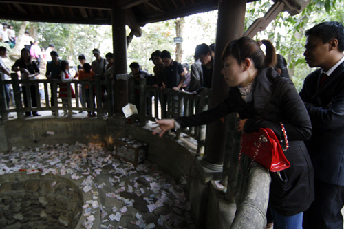 Tiền công đức rải khắp giếng cổ Đền Hùng