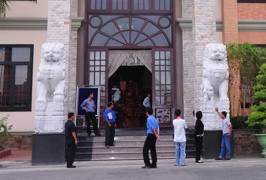 Cặp sư tử đặt sai ở Công ty Bianfishco. Sư tử đực đặt chân lên hình quả cầu (bên trái) đáng lẽ phải đặt ở phía bên phải và ngược lại. Ảnh: