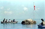 Một nhóm các nhà nghiên cứu và quân sự Philippines tới băi cạn Scarborough. Ảnh Reuters