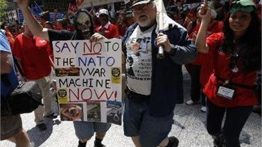 Hơn 2000 người biểu t́nh đă tập trung tuần hành tại Chicago, Mỹ để phản đối các chính sách của G-8 và NATO. Ảnh: THX