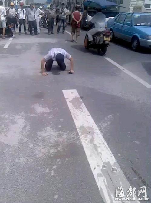 Lê lết bằng đầu gối giữa đường để... xin lỗi vợ