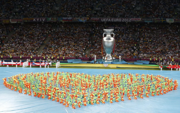 Màn đồng diễn trước trận chung kết ở Kiev, khép lại một EURO rất thành công về mặt tổ chức - Ảnh Getty