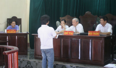 Tuy nhiên, thư ký phiên tòa đã không ý. Trước sự việc này, một số cán bộ của TAND TP Hưng Yên đã đề nghị vợ chồng bị cáo Hưởng phải “làm đơn trình bày sự việc”