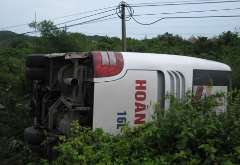 Lật ôtô chở 20 khách, phụ xe tử vong