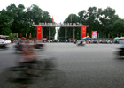 Vua Quang Trung (1753 – 1792), c̣n được biết đến là Quang Trung Hoàng đế, vua Quang Trung hay Bắc B́nh Vương là vị hoàng đế thứ hai của nhà Tây Sơn (ở ngôi từ 1788 tới 1792) sau Thái Đức Hoàng đế Nguyễn Nhạc. Ông là một trong những lănh đạo chính trị tài giỏi với nhiều cải cách xây dựng đất nước, quân sự xuất sắc trong lịch sử Việt Nam với những trận đánh trong nội chiến và chống ngoại xâm chưa thất bại lần nào. Do có nhiều công lao, Quang Trung Nguyễn Huệ là người anh hùng áo vải của dân tộc Việt Nam. Con phố Quang Trung dài 1.100m, đi từ phố Nhà Chung giáp với vườn hoa Tây Sơn đi tới ngă ba Trần Nhân Tông.