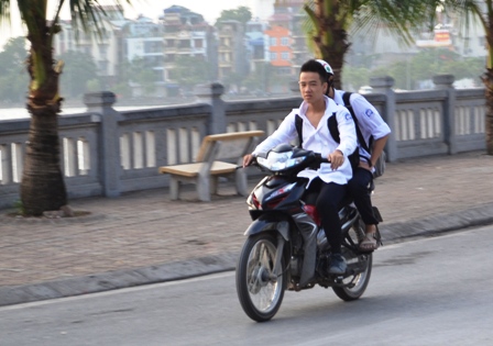 Vào giờ tan học, nếu đảo qua các đoạn đường có nhiều trường phổ thông th́ rất dễ bắt gặp những chiếc xe máy rú ga, chở trên đó là những cô cậu đang mặc đồng phục học sinh đầu không đội mũ, đi “kẹp 3” phóng như bay trên đường.
