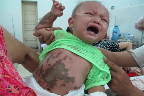 Một phụ nữ và 3 trẻ nhỏ bị tạt axit dã man
