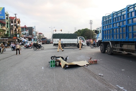 Dừng đèn đỏ, một người đàn ông bị xe tải đâm chết