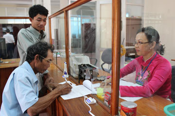 | Một hộ nghèo làm thủ tục vay vốn tại Ngân hàng chính sách |