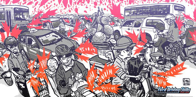 Hoặc thử xem một hình ảnh tân cổ của Sài Gòn: hai vợ chồng cưỡi xe gắn máy trên con đường rợp bóng cây vào một sáng Chủ nhật. Người chồng mặc vét đen, vừa lái xe vừa nói chuyện trên di động, cô vợ mặc áo dài truyền thống, một tay ôm eo chồng còn tay kia cầm di động chuyện trò.