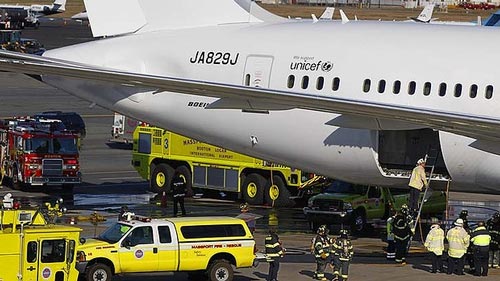 Boeing 787 Dreamliner hạ cánh khẩn, khói bốc lên