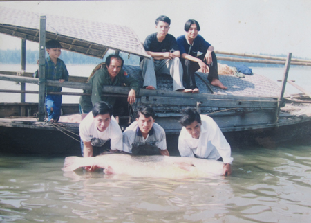 Cá đắt gấp mấy lần vàng nên mỗi khi phát hiện ra loài cá này, các ngư dân thường vây bắt cho kỳ được. Nhưng không phải ai cũng may mắn phát hiện được nó. Thỉnh thoảng người ta cũng tóm được một chú nhưng chỉ cỡ vài kg đến 1-2 yến là cùng. “Loài cá này có đặc tính rất lạ là nó chỉ sống và kiếm ăn theo lạch nước cố định nhưng thường nằm rất sâu. Thỉnh thoảng nó mới phát ra tiếng kêu như tiếng bò rống. Anh nào may mắn nghe được tiếng rống của con cá thì mới có thể xác định được vị trí của nó. Lúc đó chỉ có việc giăng lưới và… chờ thôi”, ông Lới kể tiếp. | | Với con cá sủ vàng nặng gần 7 yến, ông Lới đã bán được 170 triệu đồng - một kỷ lục vào thời điểm năm 1998 (ảnh gia đình cung cấp) |