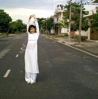 Hình ảnh Phong sau ca phẫu thuật khi được vận bộ áo dài cấp 3 mơ ước. Giờ đây, Lê Ánh Phong lại bước tiếp con đường đầy rẫy khó khăn phía trước - khi chưa được luật pháp thừa nhận và bảo vệ cũng như là tìm kiếm tình yêu đich thực cho mình.