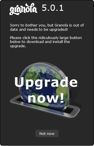 Lưu ý: Bạn nên đánh dấu bỏ đi tùy chọn “Check for Updates” để phần mềm không tự động kiểm tra và nâng cấp lên phiên bản mới (có thể là phiên bản bị thu phí). Bên cạnh đó, nếu trong quá trình sử dụng Granola hiện ra hộp thoại yêu cầu nâng cấp phiên bản (như hình minh họa bên dưới), bạn chỉ việc nhấn nút “Not now” để bỏ qua hộp thoại này.
