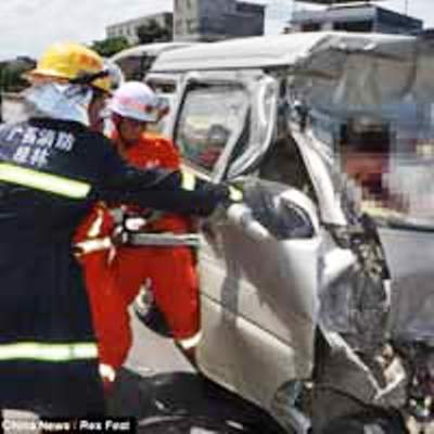 Đâm đầu qua kính ô tô, may mắn sống sót