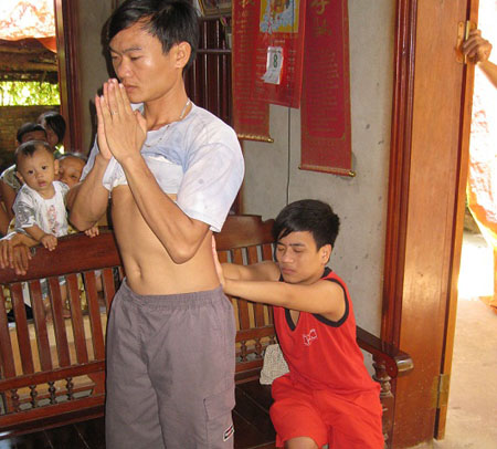 Để mục sở thị cách chữa bệnh của Bắc, chúng tôi đã trực tiếp về tại gia đình em ở làng Ốc, xã Thăng Long, huyện Nông Cống (Thanh Hóa). Đi đến đầu xã, chúng tôi đã nhanh chóng tìm được đường vào nhà Bắc, vì hỏi bất cứ người dân nào ở đây, từ già đến trẻ, họ đều biết đến Bắc.