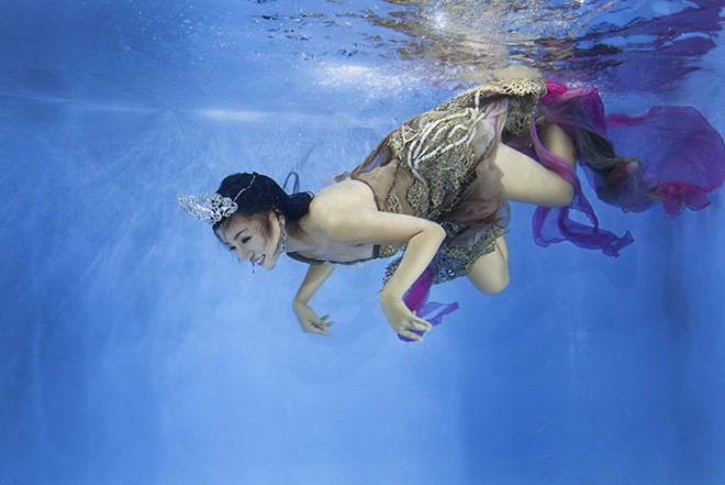 Thúy Nga suýt lộ ngực khi tạo dáng dưới nước