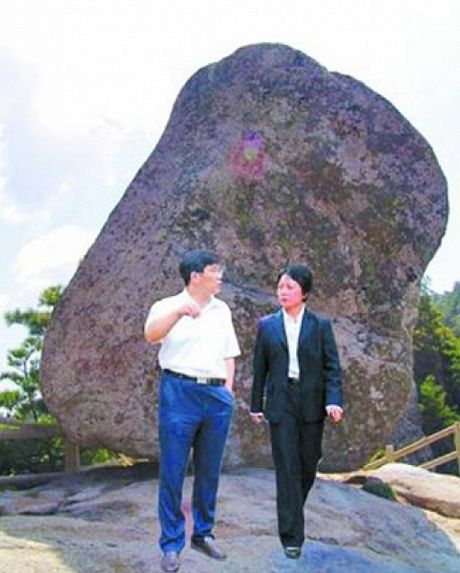 Bức ảnh tháng 7/2009 cho thấy các quan chức Trung Quốc trông như đang lơ lửng trong bóng của một tảng đá.