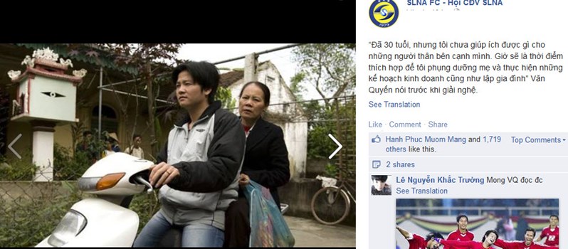Hình ảnh các fan SLNA buồn bã, khóc lóc minh họa cho việc nghe tin Văn Quyến giải nghệ cũng đã có hơn 680 like. Kèm theo đó là status: “Không còn khoác áo SLNA từ lâu, thế nhưng khi hay tin Văn Quyến giải nghệ, rất nhiều người hâm mộ xứ Nghệ buồn…”