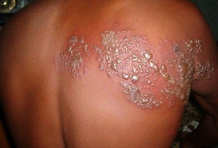 Khi côn trùng chết, độc tố ở thân chúng tiết ra gây nên phỏng rộp làm cho da đau rát như bị bỏng, phỏng nước sẽ dần xuất hiện với các hình dạng tròn, dẹt, dài và có màu vàng đục lấm tấm chạy theo vệt đỏ ban đầu