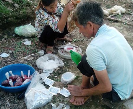 Lòng lợn, tiết canh pha nước thải