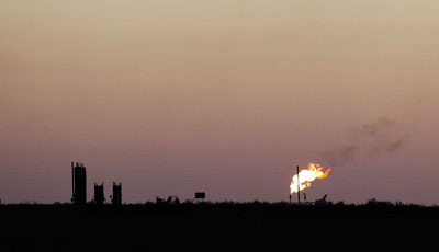 Một ngọn đuốc đốt khí dư gần San Antonio, tại khu Eagle Ford, vùng khai thác dầu khí trong đá phiến, chạy dài 400 dặm chiều ngang 50 dặm, ở phía Nam tiểu bang Texas, hiện nay có sản lượng trện 1 triệu thùng mỗi ngày. (Hình: AP/ExpressNews)