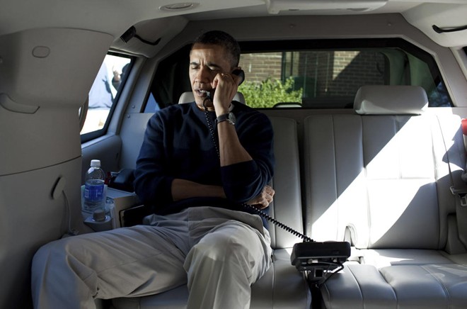 Tổng thống Obama điện cho Tổng thống Afghanistan từ xe riêng vào năm 2012. Ảnh: Reuters