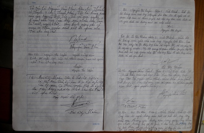Hay tin gia đình nạn nhân làm đơn, hàng xóm xa gần rất ủng hộ. Họ tình nguyện ký xác nhận gửi tới cơ quan điều tra.