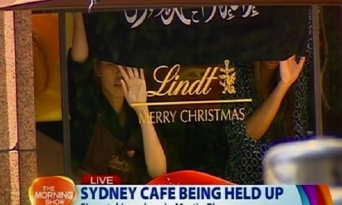Tuy nhiên, cửa quán cà phê sau đó bị khóa và các con tin bị dẫn đến bên cửa sổ với một lá cờ đen có dòng chữ Arab màu trắng "Không có Chúa trời nào ngoài Thánh Allah, Muhammad là sứ giả của Thánh Allah". Lá cờ này được xác định không phải cờ của tổ chức khủng bố Nhà nước Hồi giáo (IS) nhưng từng được nhiều nhóm Hồi giáo cực đoan khác sử dụng.