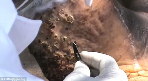 Chân của người đàn ông này đã bị bọ jigger (có tên khoa học là Tunga penetrans, một loại côn trùng nhỏ trông giống bọ chét) làm tổ trong nhiều năm khiến nó bị sưng, biến dạng và làm ông không thể đi lại được.